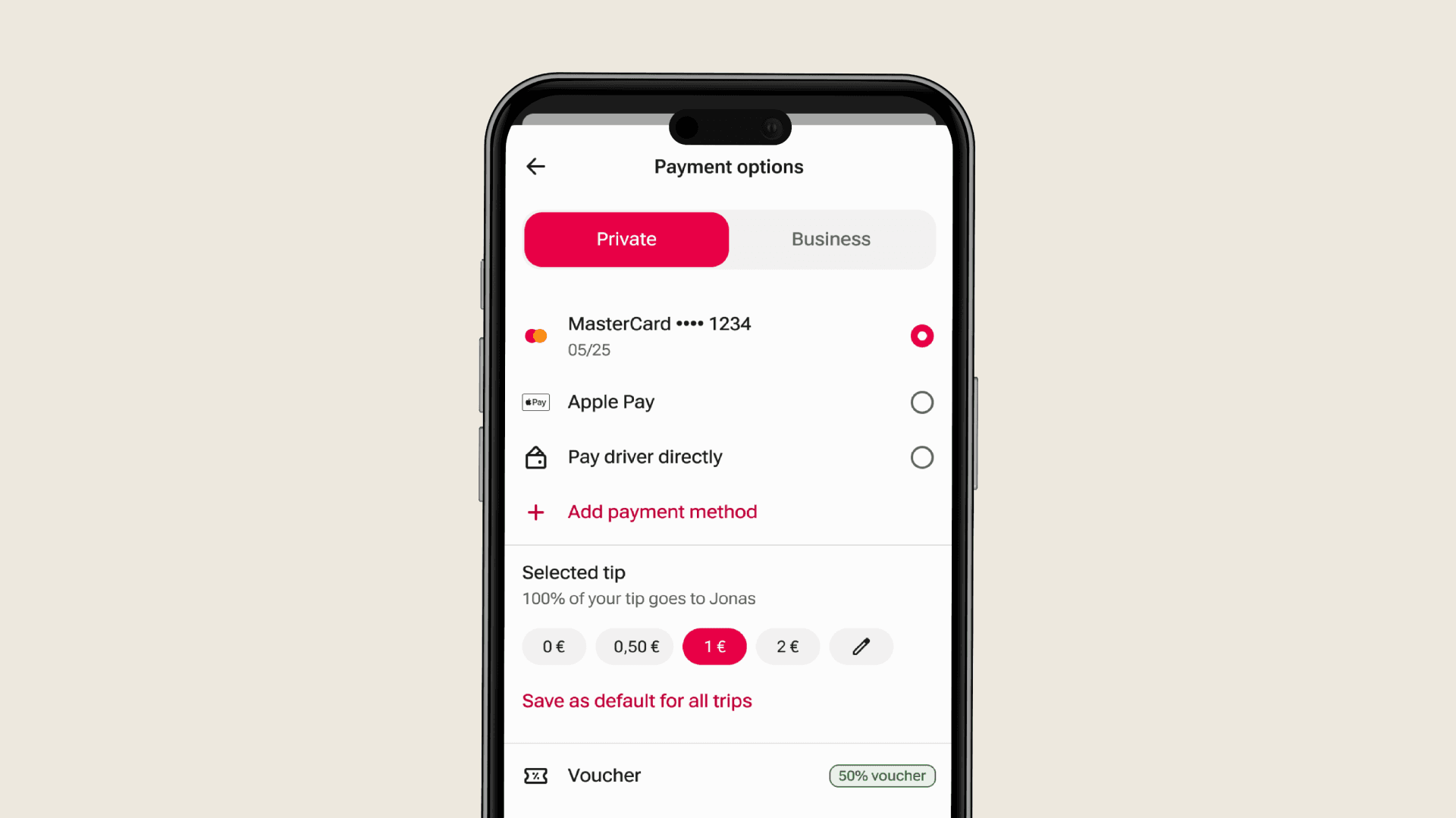 Płać szybko i bezpiecznie gotówką, kartą, ApplePay, Google Pay lub PayPal. Gdy płacisz w aplikacji, Twoje zniżki automatycznie obniżą cenę za przejazd.