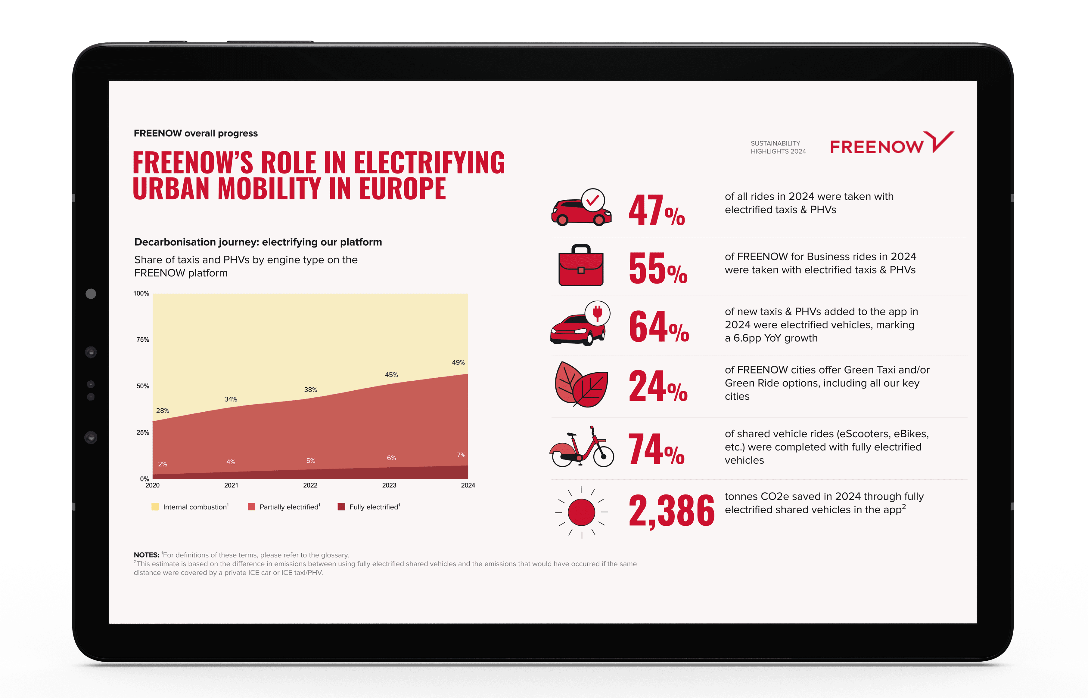 Find out more about Freenow's initiatives to drive decarbonisation through taxi electrification and how we're supporting taxi drivers during this transition.